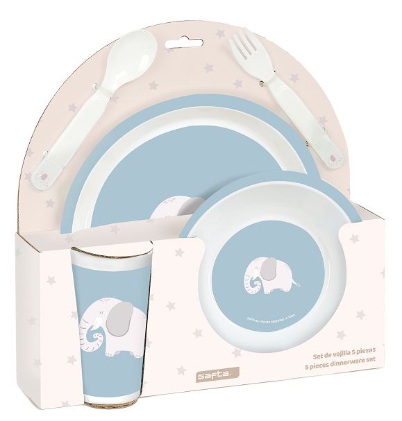 SET VAJILLA 5 PIEZAS PREESCOLAR ELEFANTE
